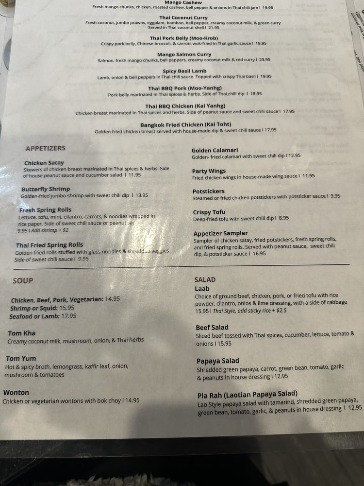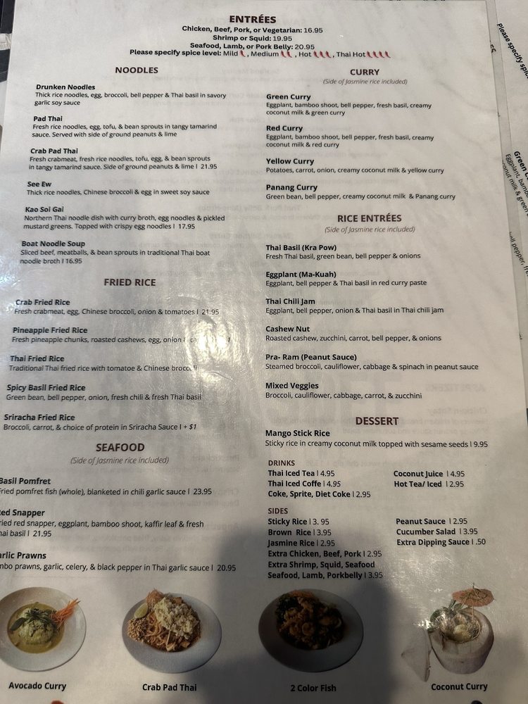 Signature dishes include the Drunken Noodles, known for their pan-fried thick rice noodles infused with aromatic Thai basil, and the indulgent pad Thai, crafted with the perfect balance of sweetness, acidity, and umami. Each plate is a testament to their dedication to quality and flavor.